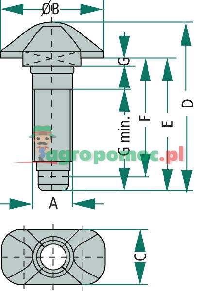 - Czop obrotowy z ograniczeniem gwintu - przetyczką