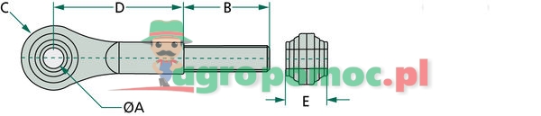 Trzpień gwintowany z główką do John Deere AL67292, AL18136, AL39171