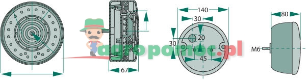 ze światłem pozycyjnym tylnym LED, światłem hamowania i kierunkowskazem wymiary: Ø 140 x 67 mm, dopuszczone do ruchu drogowego, zgodne z ADR (IP69K):