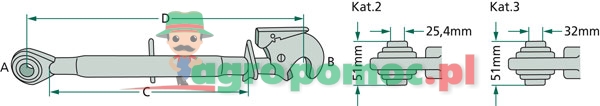 Strona prawa: główka z trzpieniem gwintowanym z hakiem zaczepowym kat. 2 lub kat. 3