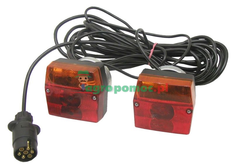 trójfunkcyjny zestaw oświetlenia przyczepy składa się z: uchwytu magnetycznego (siła przyczepności ok. 20 kg), całkowicie okablowany, z wtyczką 7-pinową, przewód pośredni ok. 2,20 m, przewód główny ok. 7,50 m: