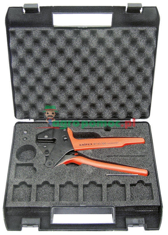 Szczypce bez profili Crimp z narzędziem montażowym w walizce z tworzywa. Wkładka z pianki z przegrodami na profile Crimp.
