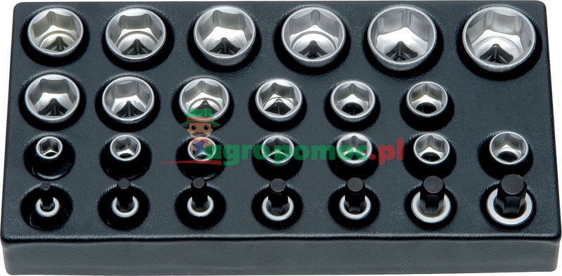 26-el., w 1/3 modułu: 6-kąt. nasadka 1/2"-SW 10, 11, 12, 13, 14,
