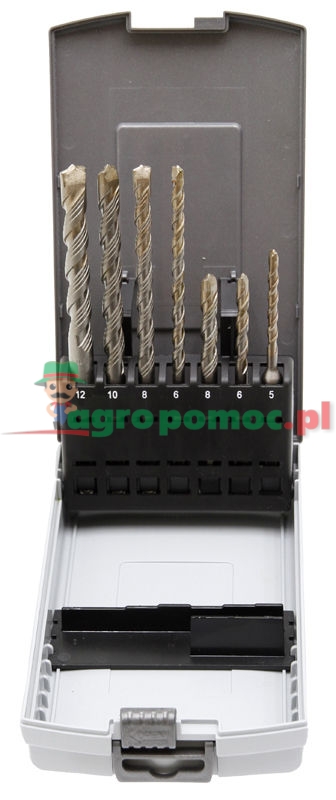 7-el., w kasecie. Po 1 wiertle Ø 5, 6, 8 mm, z 50 mm dł. rob., po 1 eirtleØ 6, 8, 10, 12 mm, z 100 mm dł. rob.