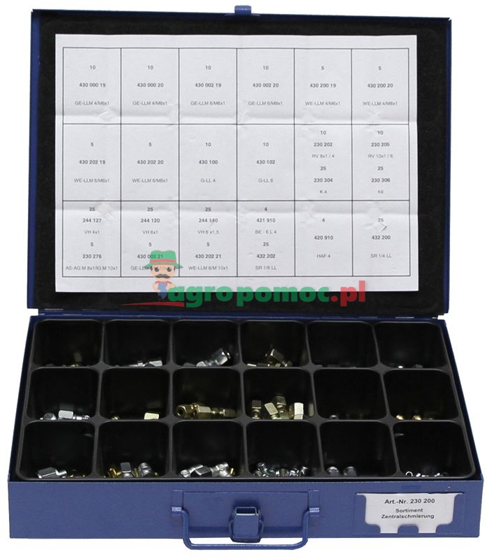 pudełko metalowe 340 x 240 x 55 mm wkład z tworzywa sztucznego z 18 przegródkami zawartość: 275 szt.