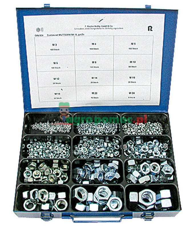 100 szt. M3 100 szt. M4 100 szt. M5 100 szt. M6 100 szt. M8 50 szt. M10 25 szt. M12 25 szt. M14 20 szt. M16 10 szt. M18 10 szt. M20 5 szt. M24