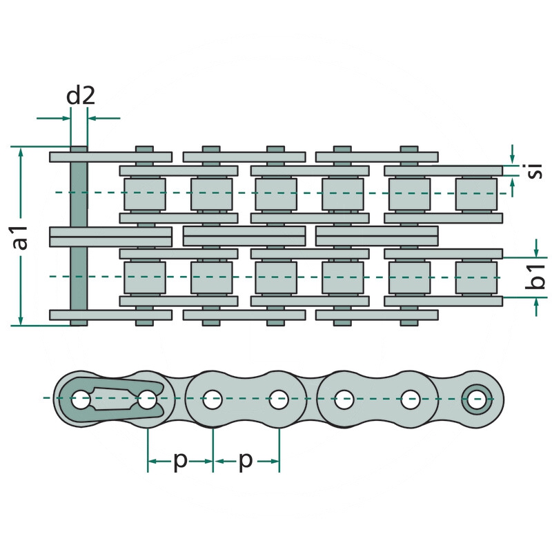 - Łańcuchy rolkowe dwurzędowe