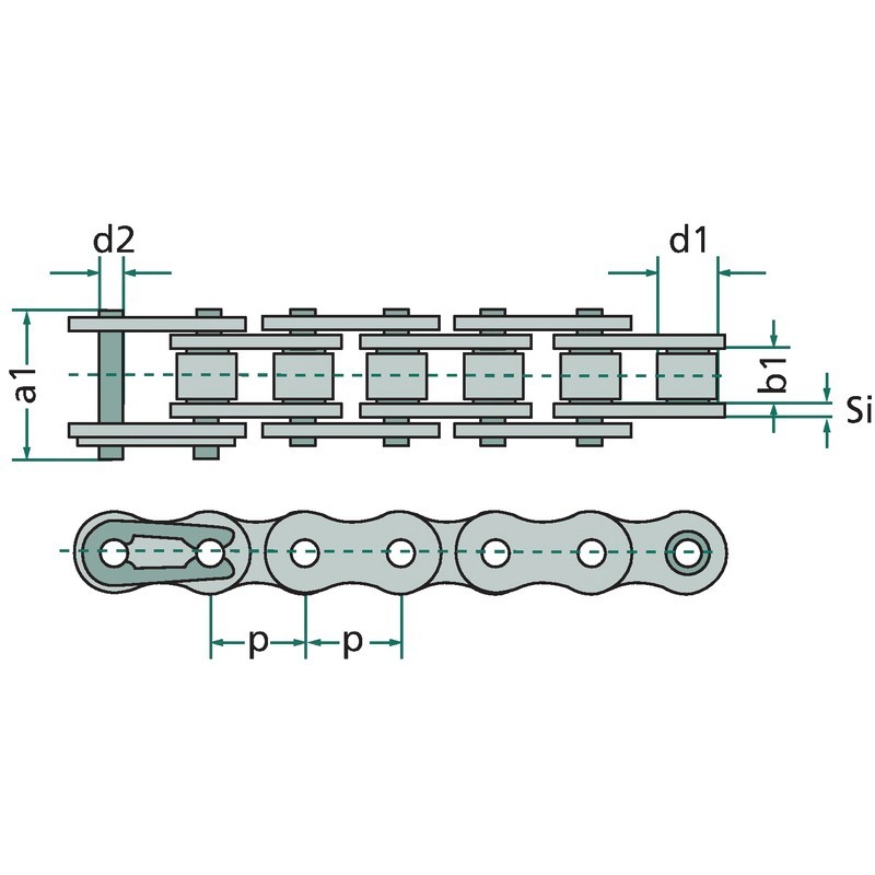 - Łańcuchy rolkowe jednorzędowe, typ europejski, DIN 8187, ISO R 606 B
