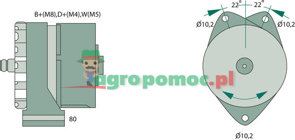 N1 28V 10/55A 28V 55A bez koła pasowego B+ (M8), D+ (M4), W (M5)