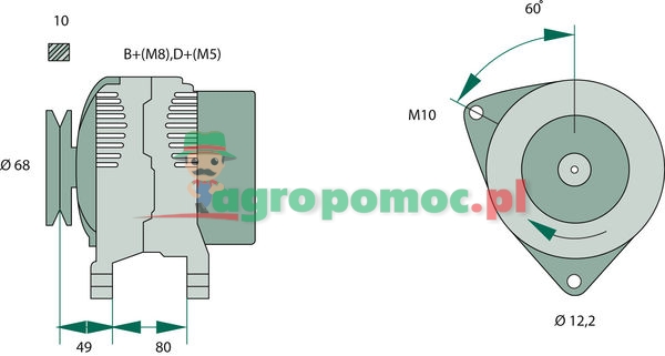 KC 14V 50/90A 14 V/ 90 A z kołem pasowym B+ (M8), D+ (M5)
