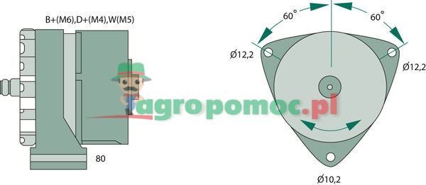 K1 28V 9/28A 28 V/ 28 A bez koła pasowego B+ (M6), D+ (M4), W (M5)