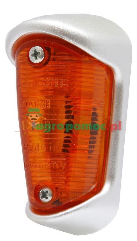 do zamontowania z przodu, z boku lub z tyłu pojazdu, z żółtym kloszem lampy, wytrzymała obudowa, pokryta srebrnym lakierem, z 2 śrubami mocującymi M4, K 12793