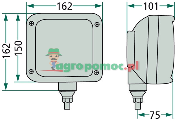 ze światłem mijania H7, światłem drogowym H3, pozycyjnym, do montażu, z uniwersalnym uchwytem, z śrubą mocującą M12, wymiary klosza 120 x 120 mm, wbudowane żarówki,