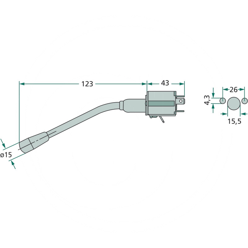 Wersja: Funkcje: kierunkowskaz, klakson i sygnał świetlny, drążek włącznika o długości 123 mm wygięty do góry o 45°, z funkcjonalnym nadrukiem na uchwycie i wiązką przewodów