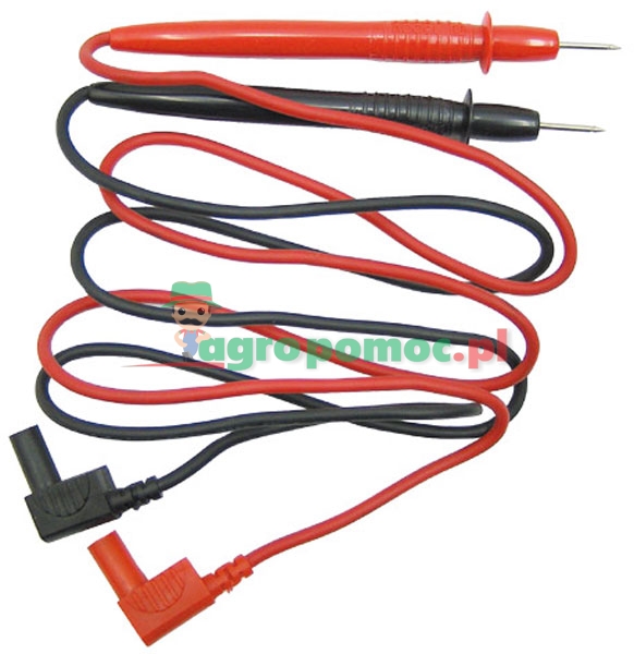 Przewody z tworzywa sztucznego z miedzianym drutem Ø 1 mm², końcówki pomiarowe oraz wtyczka bezpieczeństwa z przyłączem Ø 4 mm, długość 750 mm Napięcie maks. 1000 V Prąd znamionowy ma