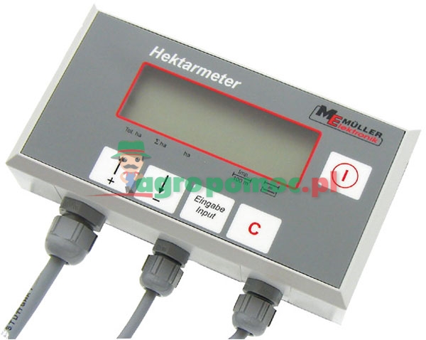 Funkcje: Licznik hektarów z wielokrotnie sprawdzoną techniką mikroprocesorową. To uniwersalne urządzenie do wszystkich maszyn rolniczych i kombajnów samojezdnych, które służy do: - ustalenia powierzchni - pomiaru powierzchni całkowitej Technika: - przezroczysta, wytrzymała klawiatura z folii - odporna na uszkodzenia obudowa - duży, podświetlony wyświetlacz LCD. Wskazana funkcja zostaje zaznaczona strzałką w okolicy dolnej ramki - funkcja zapmiętywania wszystkich otrzymanych i wprowadzonych danych, także przy wyłączonym urządzeniu - temperatura robocza -10° do +70°C - uspokojone czujniki, odporne na wodę i brud Zalety: - stałe wskazanie wybranej funkcji - prosta obsługa, tylko jeden przycisk potrzebny do rozpoczęcia pracy - brak możliwości usunięcia danych dotyczących powierzchni całkowitej - korzystna cena