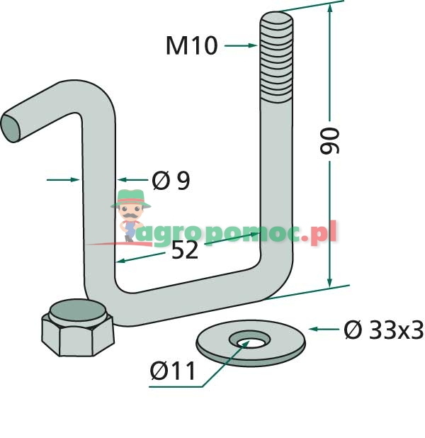 z nakrętką samokontrującą M10 i podkładką do ramy 50 x 50 mm