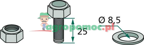 M8 x 1,25 x 25 mm z nakrętką samokontrującą i podkładką