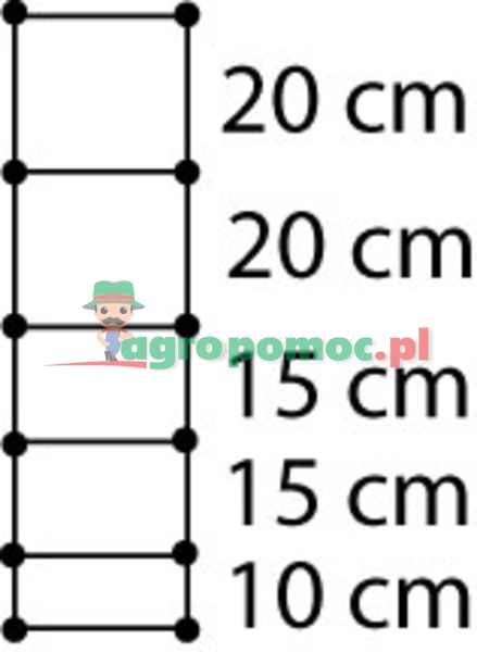 Wysokość = 800 mm, 6 drutów poziomych, rozstaw drutów pionowych 15 mm, druty wzdłużne i poprzeczne Ø 1,90 mm, druty skrajne Ø 2,45 mm.