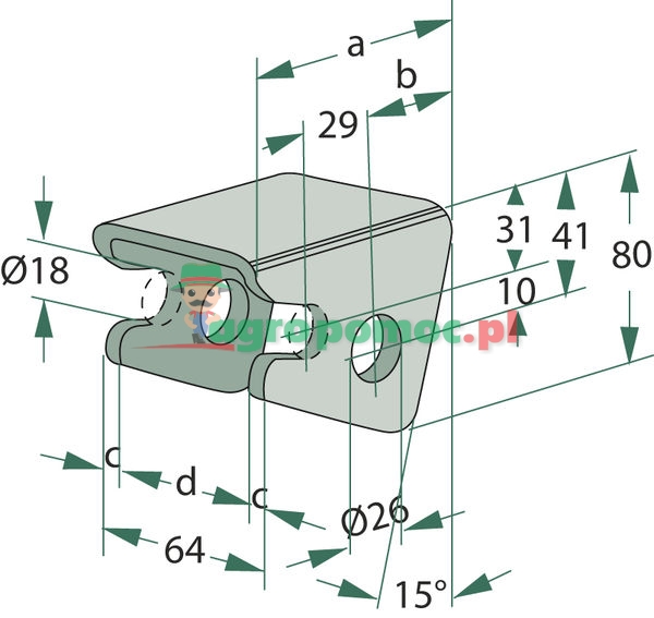 a = 90 mm b = 41 mm c = 6 mm d = 52 mm