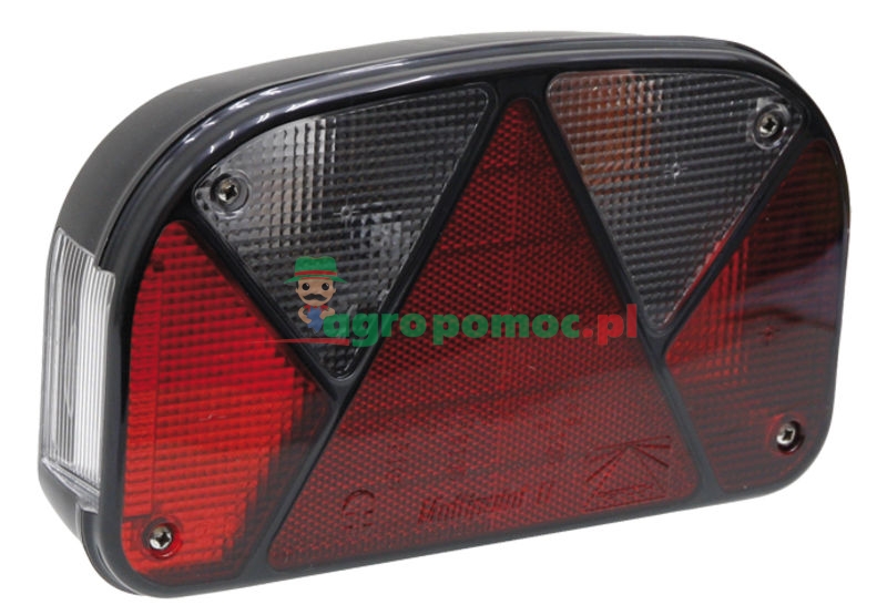 Światło pozycyjne, hamowania, kierunkowskaz z lampą jazdy wstecznej, oświetleniem tablicy rejestracyjnej i odblaskiem. Montaż poziomy lub pionowy. Amortyzowane mocowanie lampy, z żarówkami, 5-pinowe przyłącze