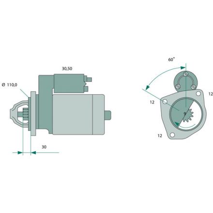 12 V / 2,6 KW 9 zębów (alternatywny produkt do 0986 012 670)