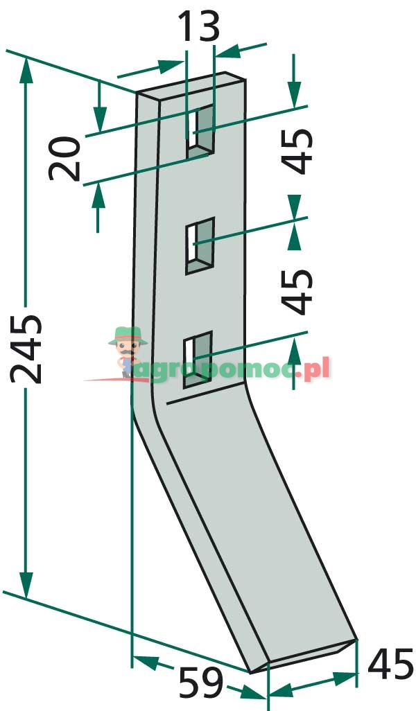 zagięty, w komplecie śruba i nakrętka