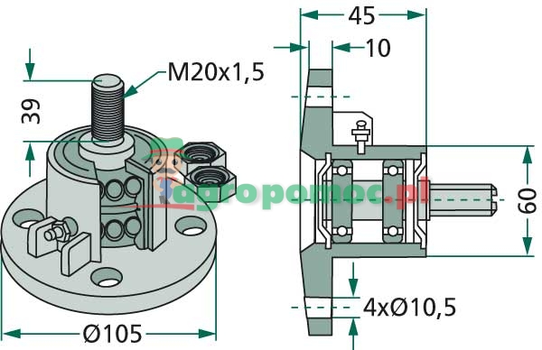 z powierzchnią stykową sklepioną na zewnątrz i łożyskiem kulkowym zwykłym