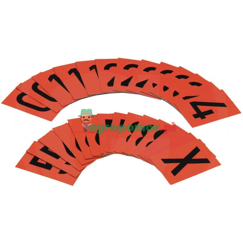 - Wersja: blacha stalowa, 26 szt. cyfr i X