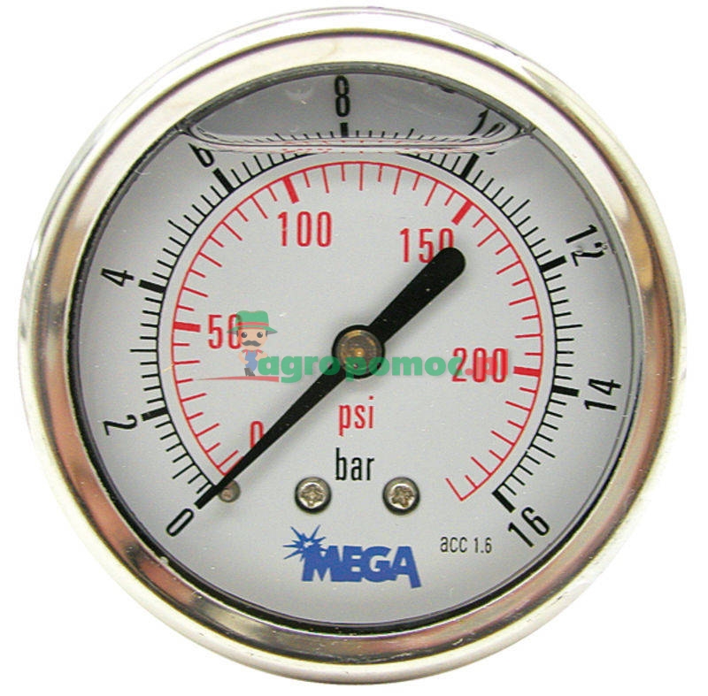 - obudowa ze stali szlachetnej, napełniony gliceryną, Ø 63 mm, przyłącze 1/4” tylne