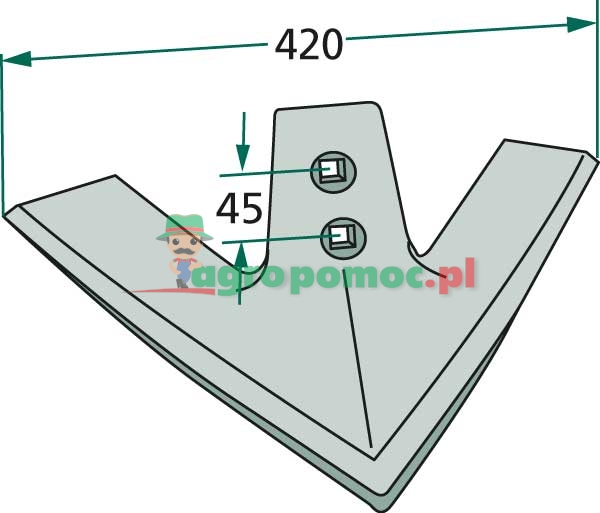 szerokość robocza = 420, rozstaw otworów = 45, grubość = 8, promień = 300