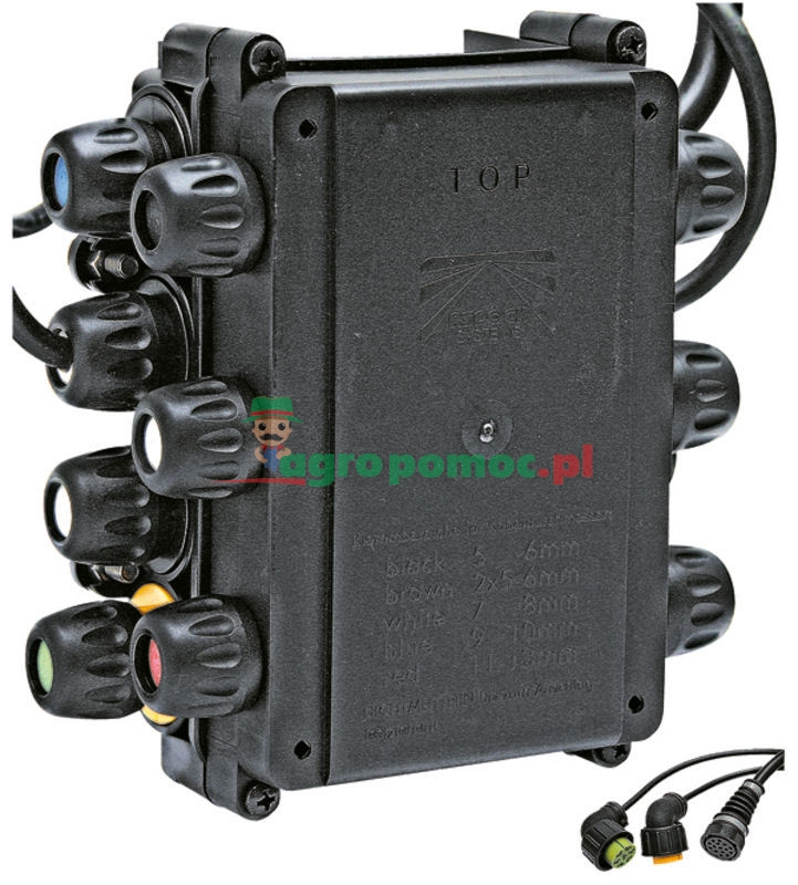 z wstępnym okablowaniem, dlatego nie ma potrzeby otwierania rozdzielacza, gwarancja szczelności IP54, kable przyłączeniowy do lewej i prawej lampy Europoint oraz główny kabel przyłączeniowy z 15-pinową wtykczą jak również wejścia dla innych urządzeń odbiorczych